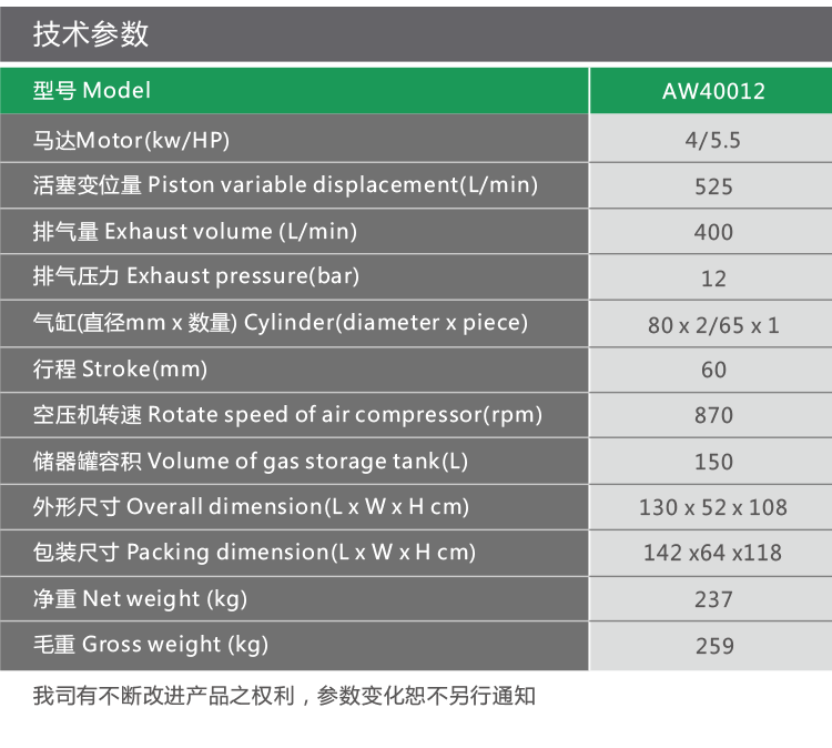 標(biāo)題:4kW/5.5HP 新型節(jié)能環(huán)保活塞空壓機(jī) AW40012
